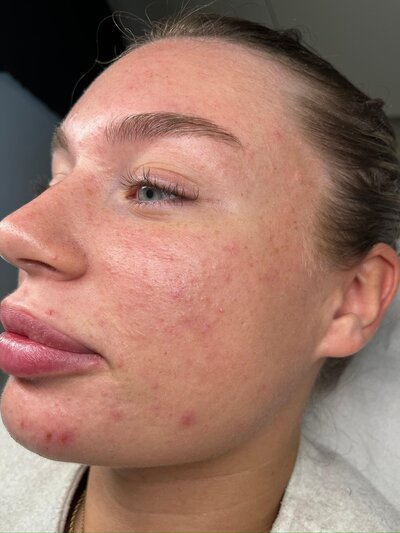 Georgie came to us struggling with acne around her cheeks and jaw line. Following a consultation and skin analysis, we advised on a blood panel to find the root cause. We were then able to treat her acne and are now working on the remaining scarring. Georgie is so happy in her skin now and embraces make up free days with confidence!